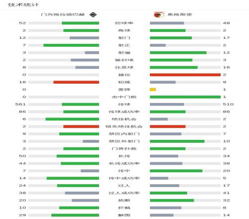 第61分钟,门兴格拉德巴赫球员奥诺拉助攻哈里斯-塔巴科维奇打入一球。