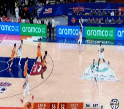 川队半场12分4板2助2断,杰曼11分3板4助,全队除了范子铭外人人都有得分,北京凭借节末一波12-3,单节轰下33分,半场北京46-40反超上海,相当不可思议,许利民自己也看乐了。